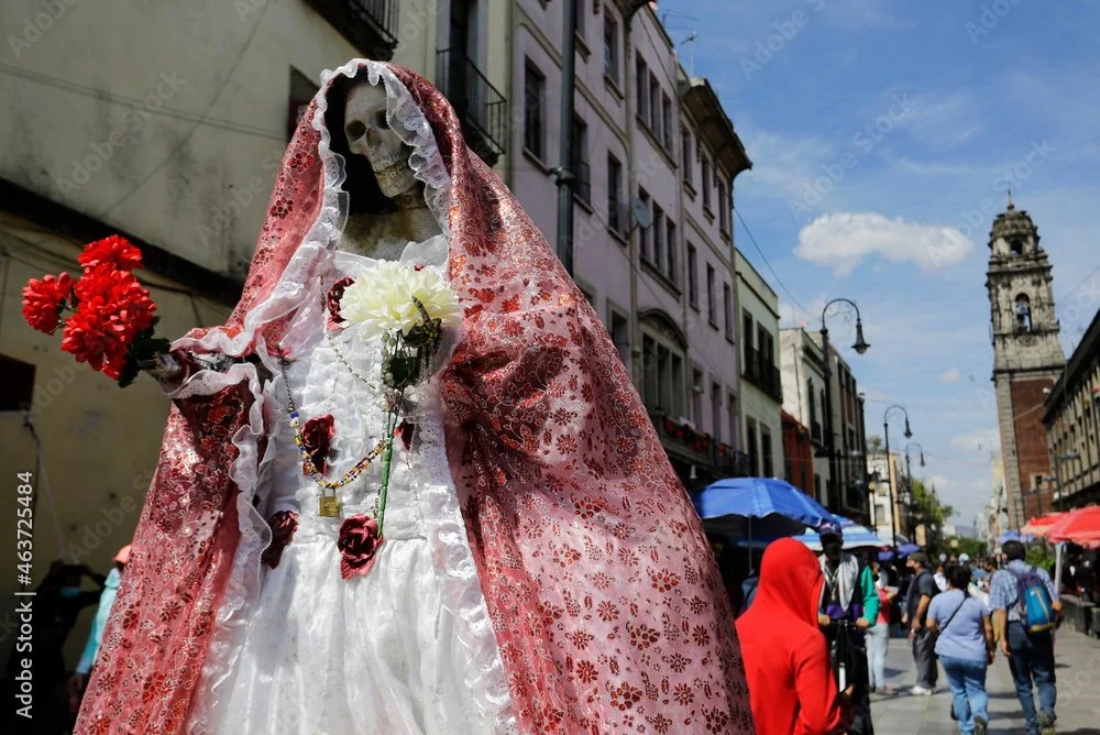 Santa Muerte is often depicted as a female skeletal figure, robed and crowned, holding a scythe and a globe or scales. She is the personification of death—but not as an ending, rather as a powerful, neutral force of nature that comes for everyone. In Mexican tradition, death is not feared in the same way it is in the West. It's part of life. Santa Muerte represents this truth with grace and dignity.